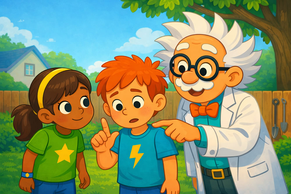 Milo gets a tiny shock from a door handle and thinks it’s attacking him. Dr. Zaptain reveals how invisible electric charges build up and suddenly jump as a spark.